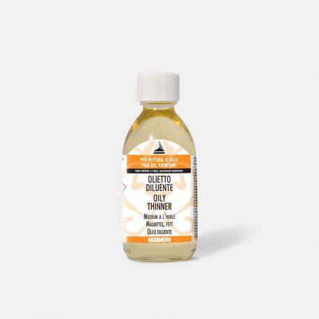 L'olietto diluente è un liquido di colore paglierino tradizionalmente usato per diluire i colori ad olio: riduce la consistenza dei colori, senza smagrire il colore.