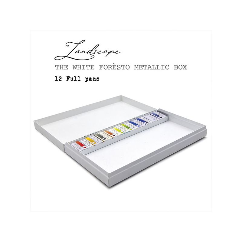 La White Box selezione Landscape è una scatola composta da 12 godet : una selezione versatile, adatta al paesaggio, ma anche ad altri soggetti come fiori, ritratti e urban sketching.