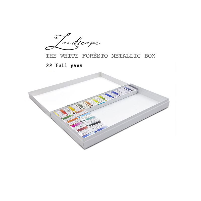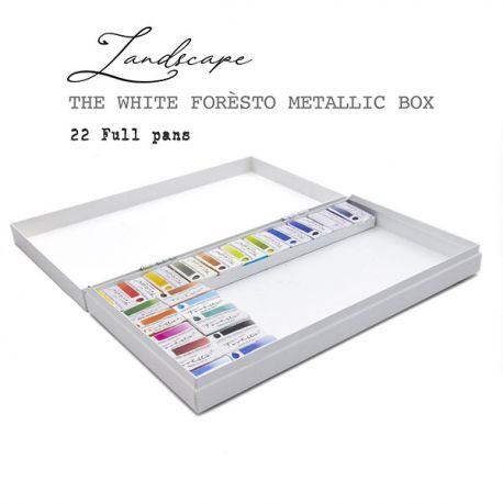 La White Box selezione Landscape è una scatola composta da 22 godet amplia la gamma cromatica dedicata ai paesaggi, esplorando le loro molteplici sfaccettature. Inoltre offre varie possibilità pittoriche per altre tipologie di soggetti come fiori, ritratti, urban sketching.