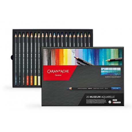 Confezioni di matite acquerellabili Museum Aquarelle di Caran d'Ache con alta concentrazione di pigmenti extrafini ad eccellente solubilità in acqua.