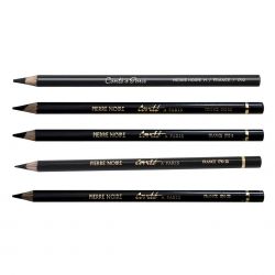 La Pietra Nera è una matita morbida, di un nero intenso, profondo, indelebile e opaco. È una matita molto apprezzata per il suo utilizzo su molteplici supporti: blocco da schizzo, carta kraft, tela di lino. Mina da 5 mm di diametro.