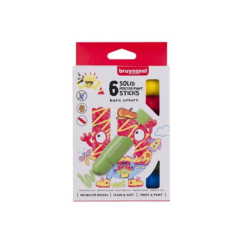 Confezione di tempera in stick: 6 colori base luminosi e coprenti, facilmente sfumabili, si asciugano rapidamente.