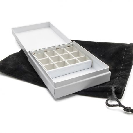 La White box mini è una scatola metallica per 12 acquerelli in formato 1/2 godet (compresi gli adesivi per facilitarne il posizionamento).